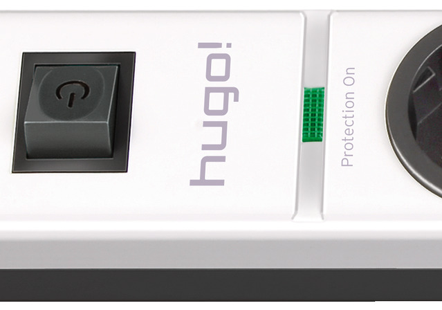 hugo! 19.500A extension socket with surge protection 8-way white/black 2m H05VV-F 3G1,5